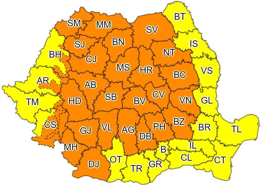 Peste jumătate de țară, sub COD PORTOCALIU de ploi abundente și vijelii. Care sunt județele vizate