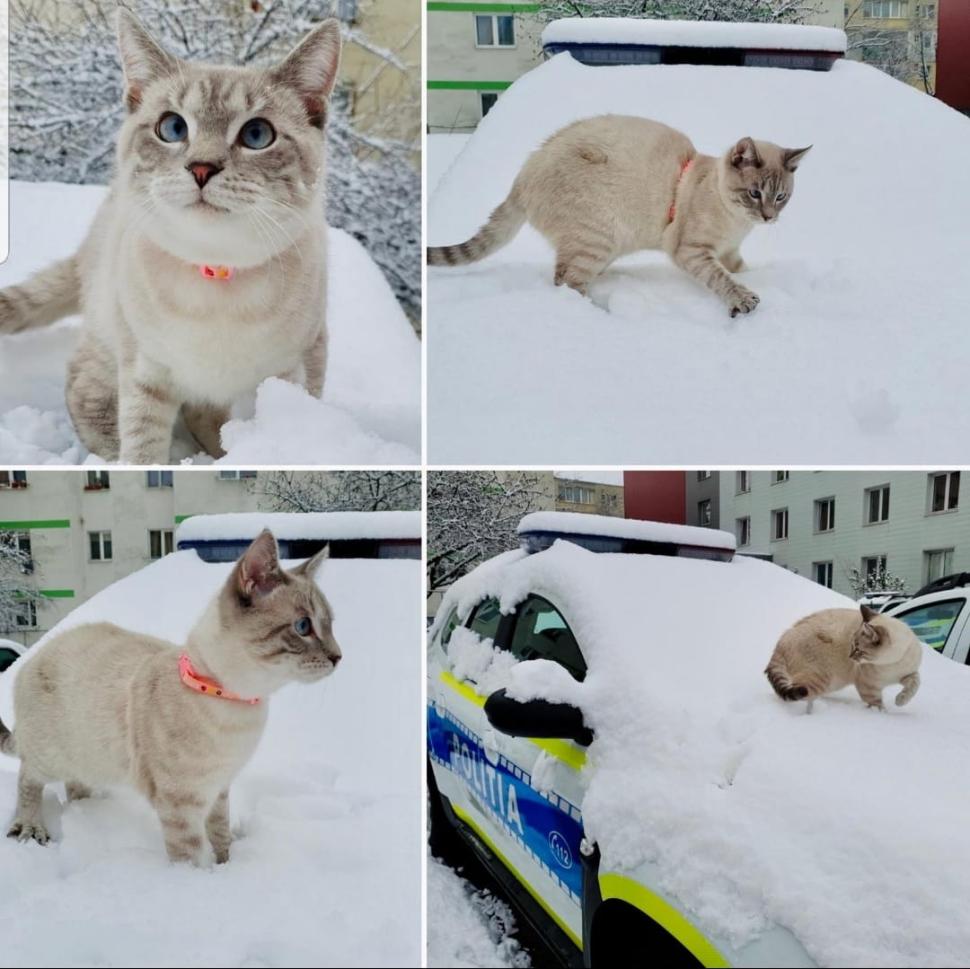 Pisica, NOUA modă la deszăpezire. Berlioz, AJUTOR la IPJ Cluj: S-a "uitat ca mâța-n calendar" - FOTO adorabilă