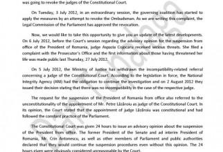 Plângerea CCR către Comisia de la Veneția, publicată pe pagina lui Dan Tapalagă