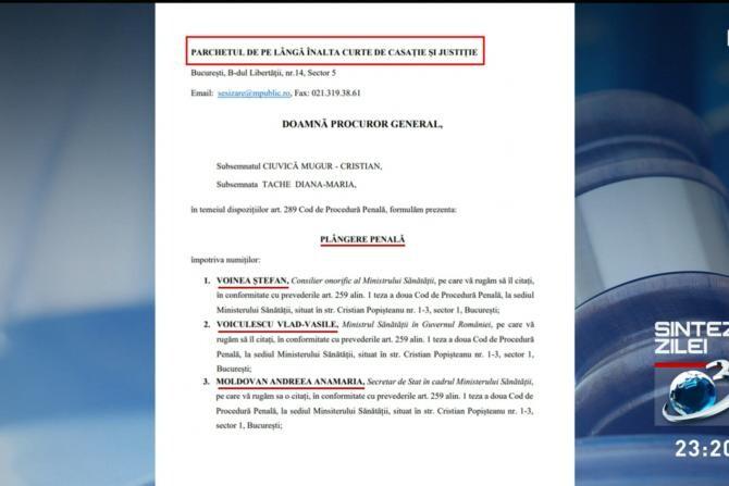 Mugur Ciuvică şi Diana Tache, plângere penală pe numele lui Vlad Voiculescu și al Andreei Moldovan - Document