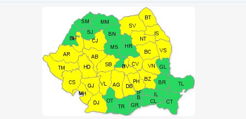 Ploi, vânt și grindină. Aproape toată țara, sub Cod Galben