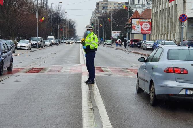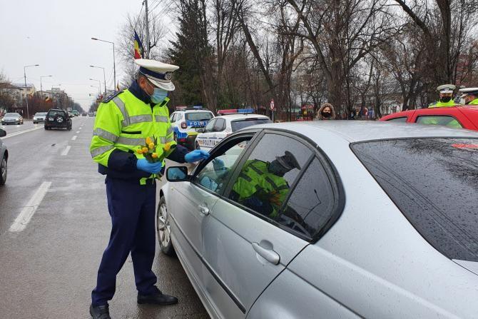Poliția Română a ”amendat” șoferițele cu flori și mărțișoare - GALERIE FOTO