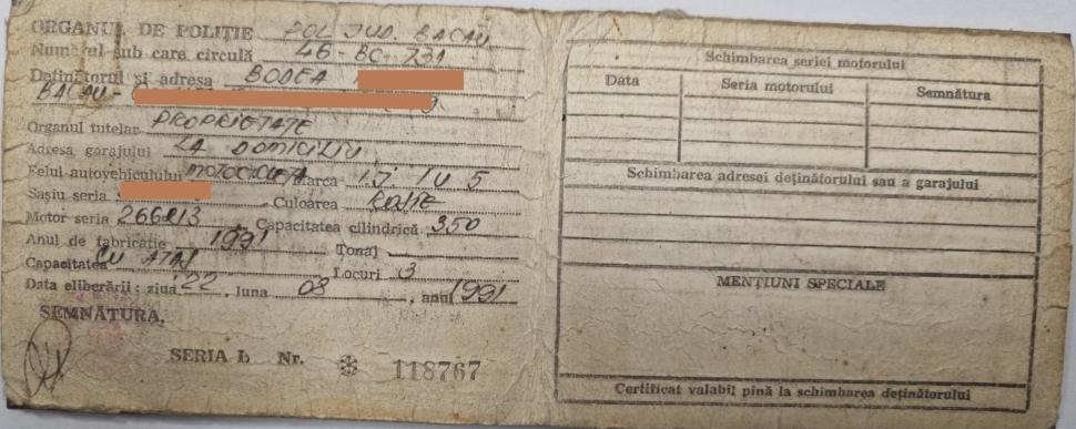 Poveste cu final fericit la RAR Bacău: Aşa se justifică certificatul de înmatriculare