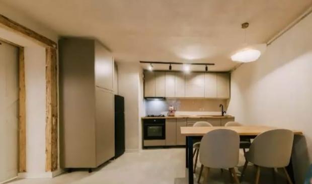 Imagine cu bucătăria apartamentului din Brașov cumpărat cu criptomonede. Foto: Captură video Pro TV