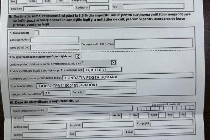 Probleme la Poştă. Angajaţii spun că au primit formularul 230 ANAF gata completat. Li se sugerează să îşi dea 3,5% din venituri Fundaţiei Poşta Română
