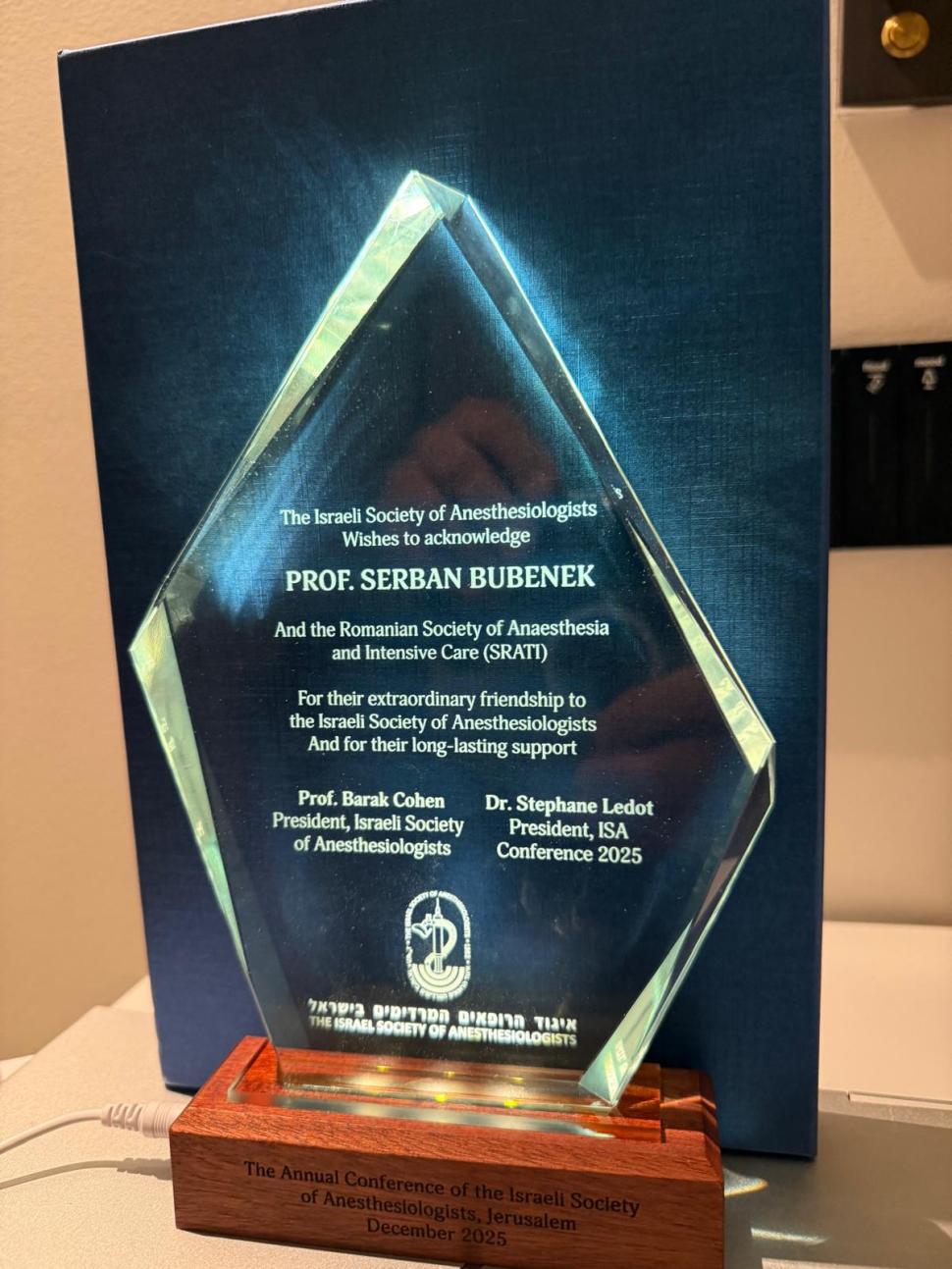 Prof. Dr. Șerban Bubenek, premiat pentru contribuția științifică și susținerea oferită comunității ATI israeliene