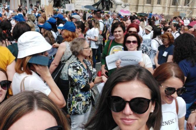 Profesorii din Cluj, nou protest pe străzile orașului. Gest frumos de susținere făcut de la balconul unei case - Foto