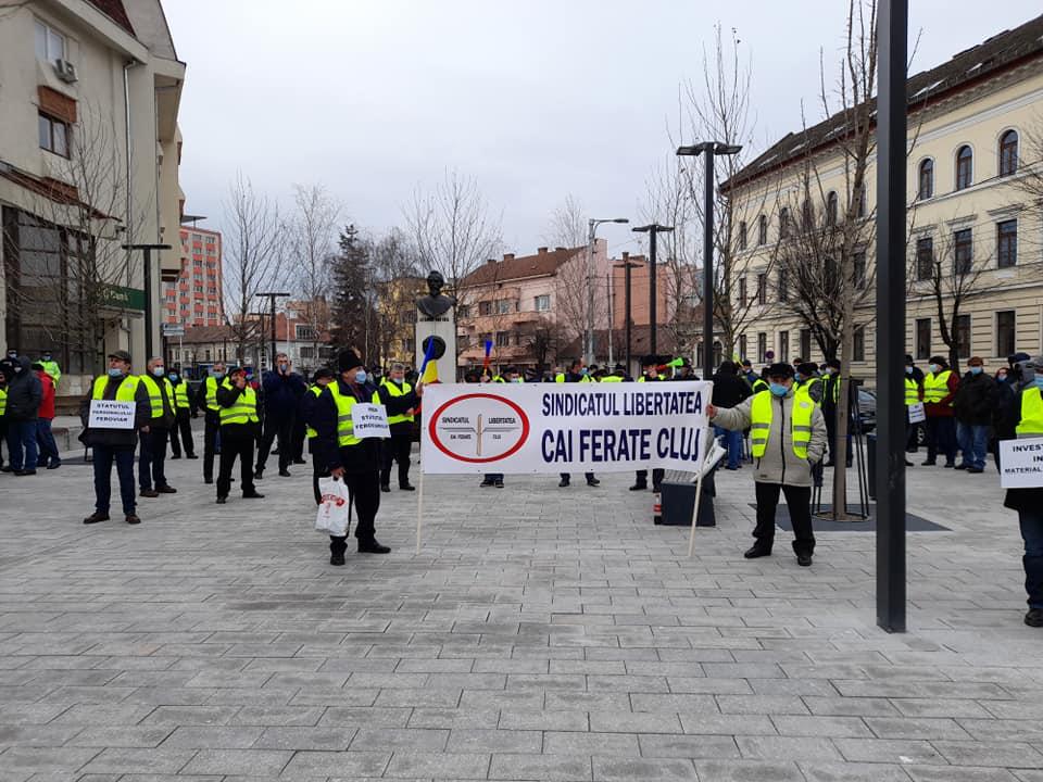 Protest împotriva „ORDONANȚEI AUSTERITĂȚII” Guvernului Cîțu, la Cluj: Hoții! Vrem aplicarea Legii statutul feroviarului!