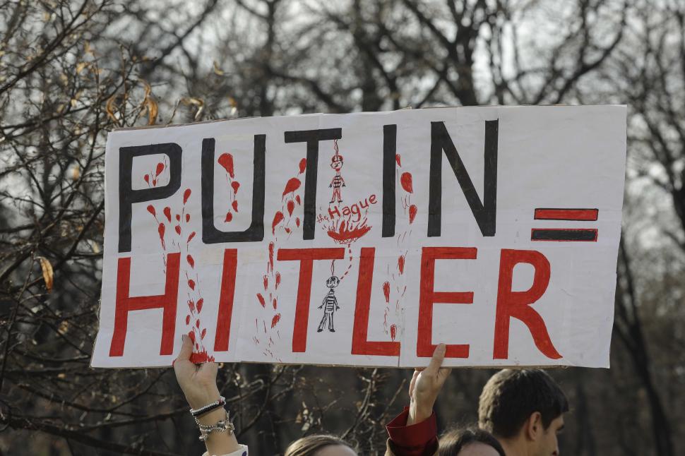 Protest în faţa ambasadei Rusiei din Bucureşti, la împlinirea a doi ani de la începutul războiului din Ucraina