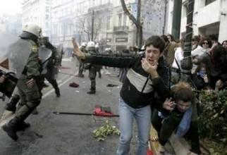 Proteste violente la Atena, Grecia. Bătaie cu poliţiştii, maşini distruse, cocktailuri molotov