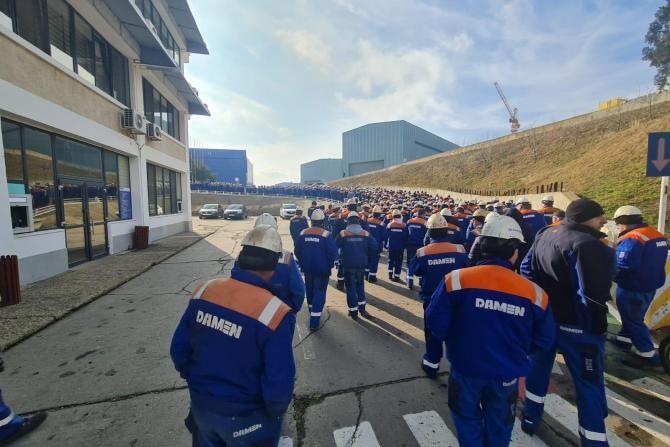 Revolta angajaților la DAMEN Mangalia. Proteste masive: Vrem o o creștere salarială corelată cu rata inflației!