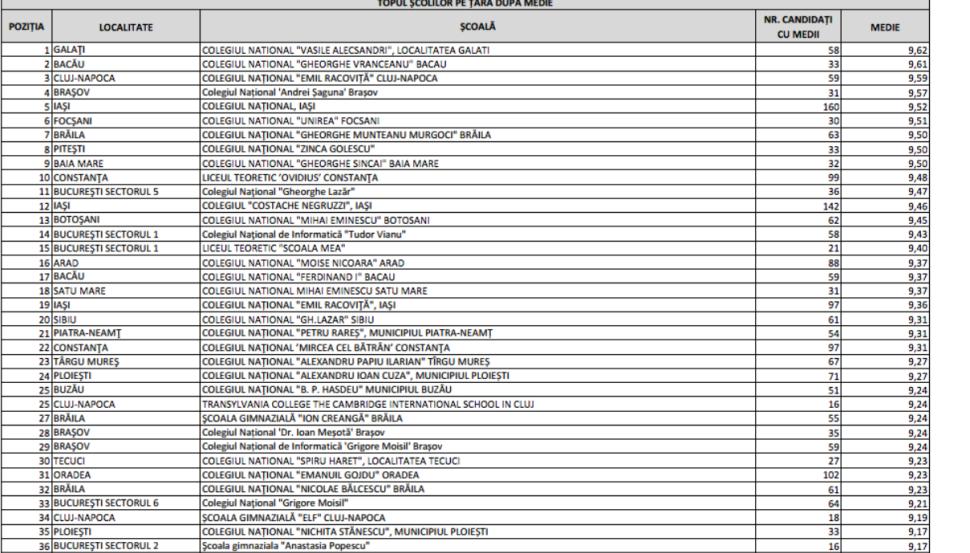REZULTATE EVALUARE NAȚIONALĂ 2015. Topul celor mai bune școli