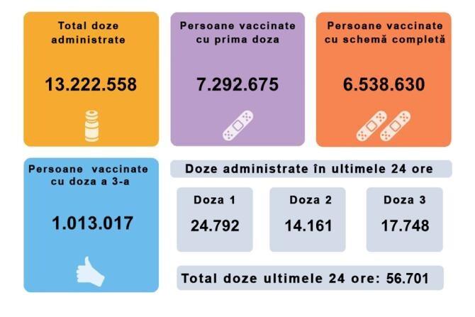 România a depășit pragul de 1.000.000 de persoane vaccinate cu doza a treia