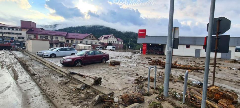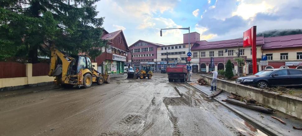 UPDATE: Se reia circulaţia la Buşteni, pe DN1. Rupere de nori la Buşteni şi Sinaia. DN1, blocat de ape. Probleme şi în campinguri - FOTO