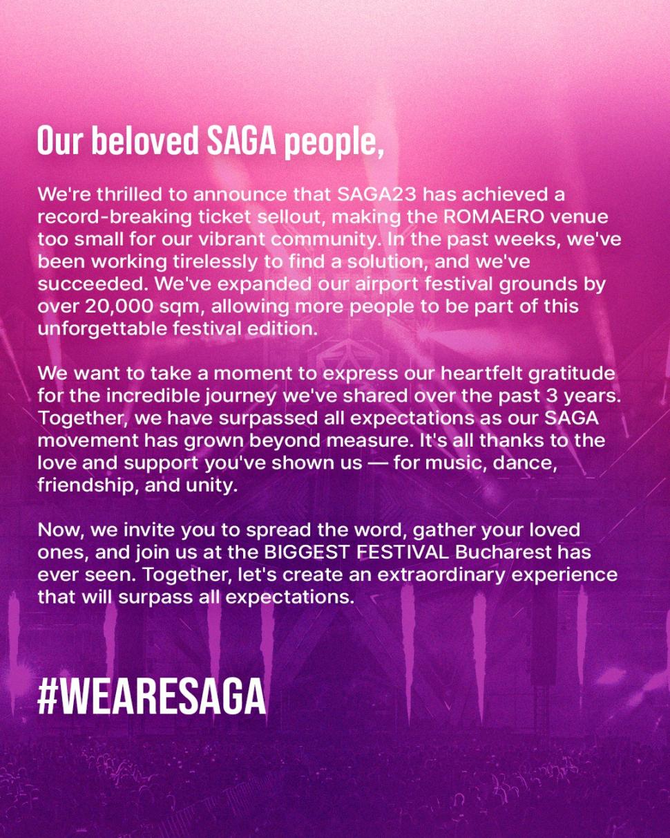SAGA Festival - Record de bilete vândute și extinderea spațiului de festival. Loreen, câștigătoarea Eurovision 2012 și 2023, se alătură line-up-ului SAGA