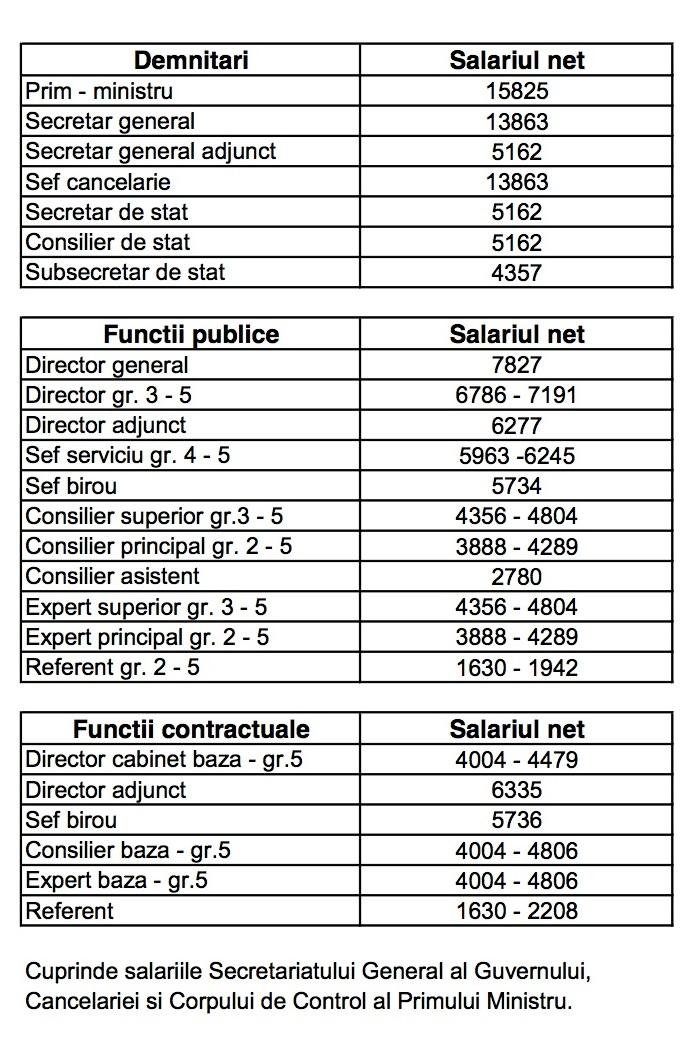 Salariile premierului și ale angajaților SGG pe luna ianuarie