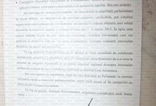 Scrisoarea lui Băsescu: Cinci cerințe pentru Ponta și Antonescu