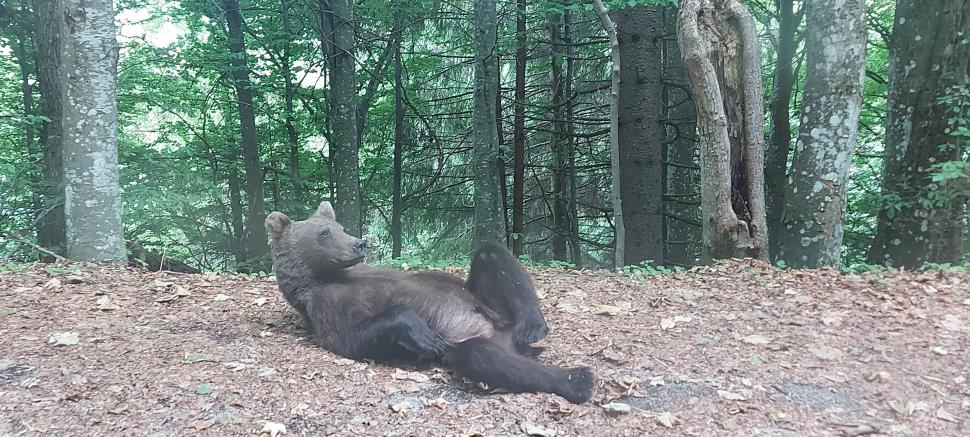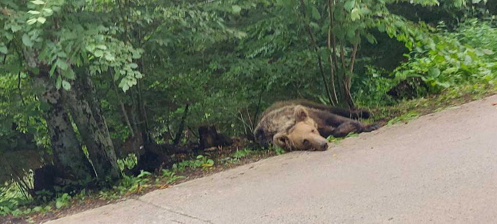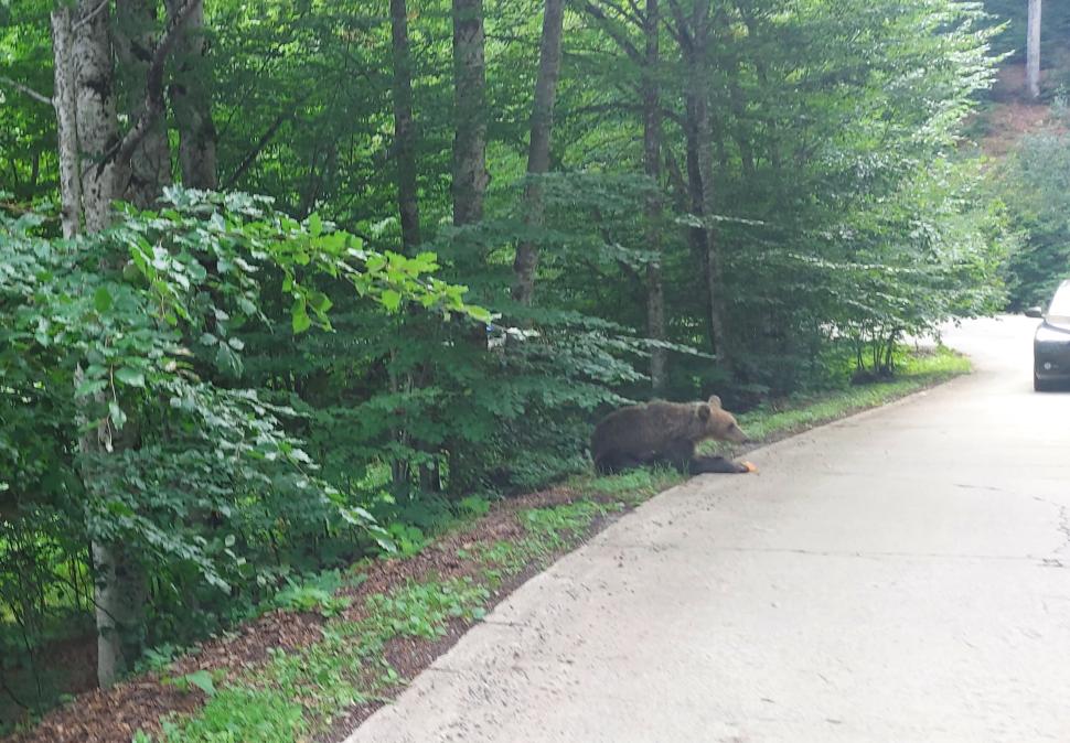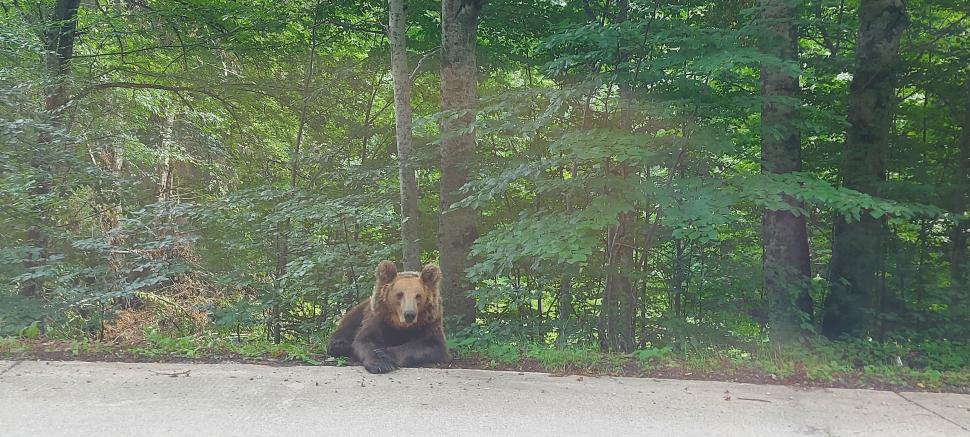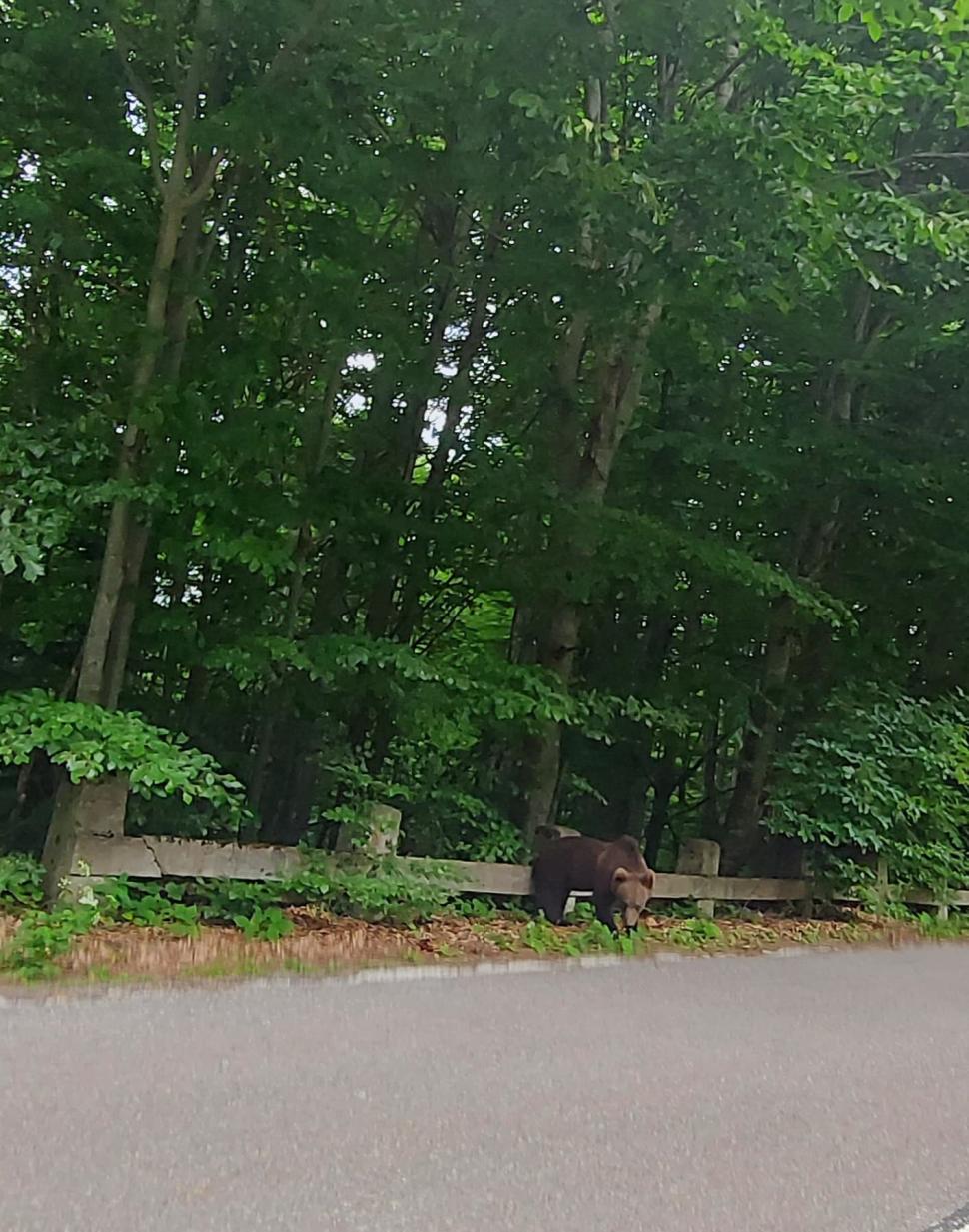 Senzații tari dacă mergi în vacanță la lacul Sfânta Ana. Urșii se plimbă nestingheriți pe marginea drumului / galerie foto
