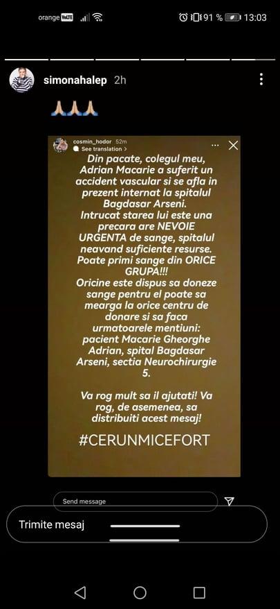 Simona Halep cere ajutorul fanilor pentru a salva viaţa unui oficial FRT: Are nevoie URGENTĂ de sânge