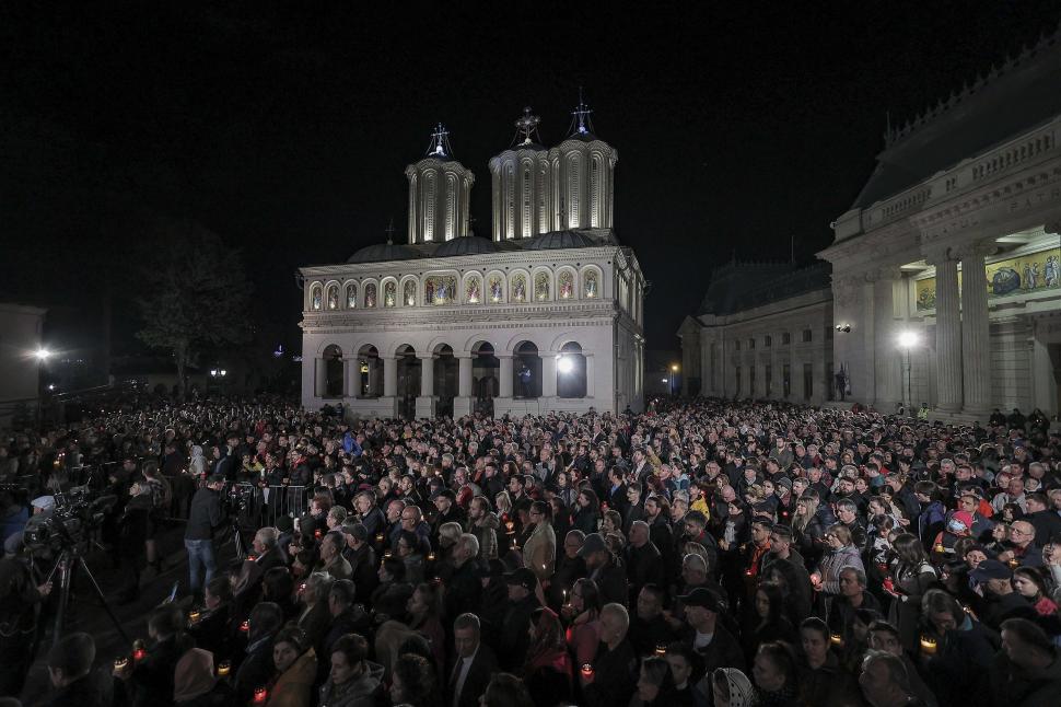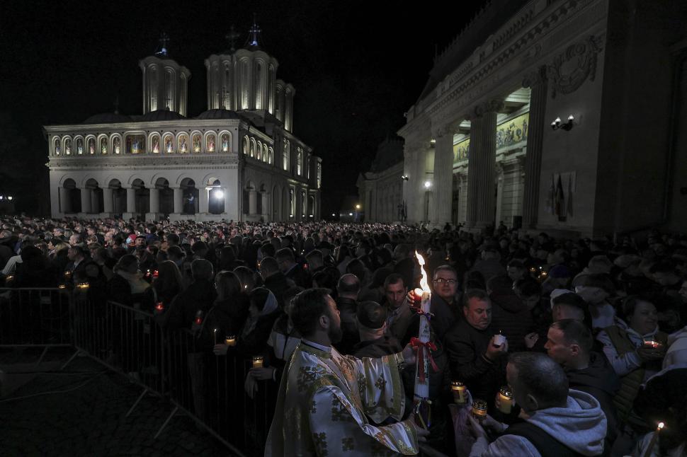 Slujba de Înviere de la Patriarhie în imagini. Patriarhul Daniel: Sărbătoarea luminii şi a bucuriei