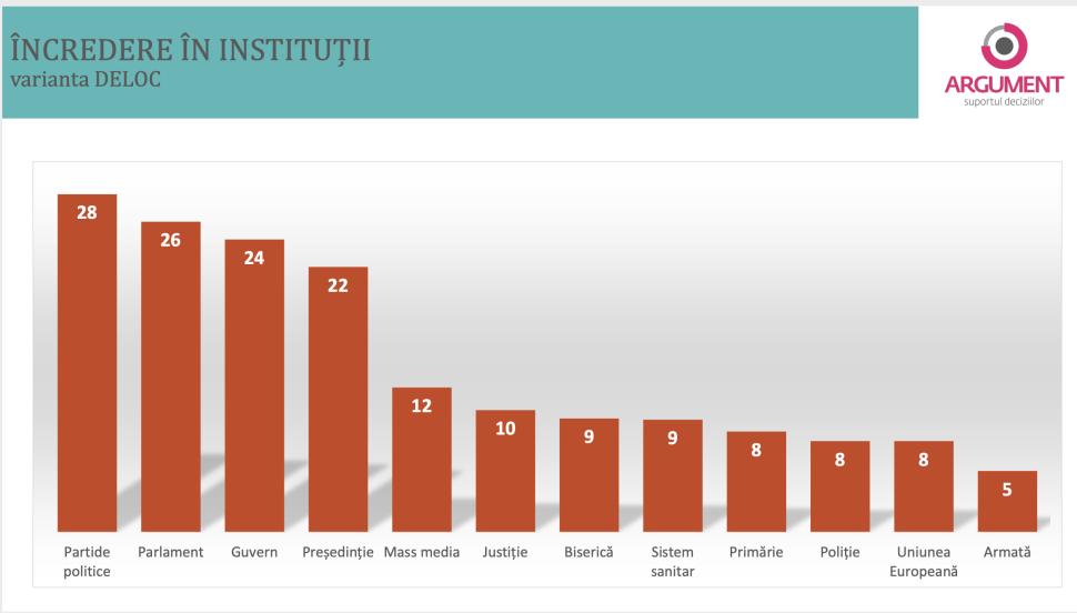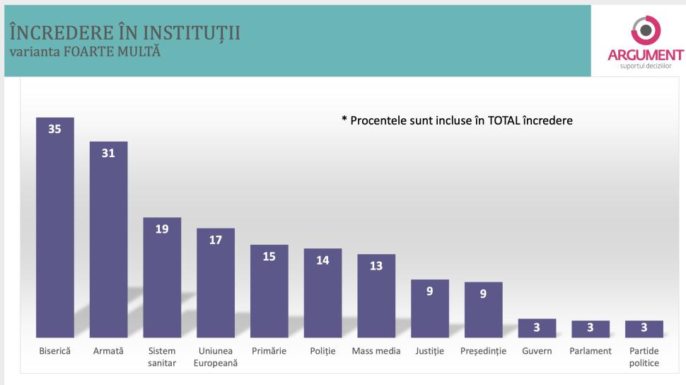 Sondaj ARGUMENT. TOPUL încrederii în instituții