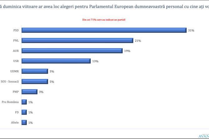 Sondaj AVANGARDE: Partidul câștigător dacă duminică ar avea loc alegeri pentru Parlamentul European