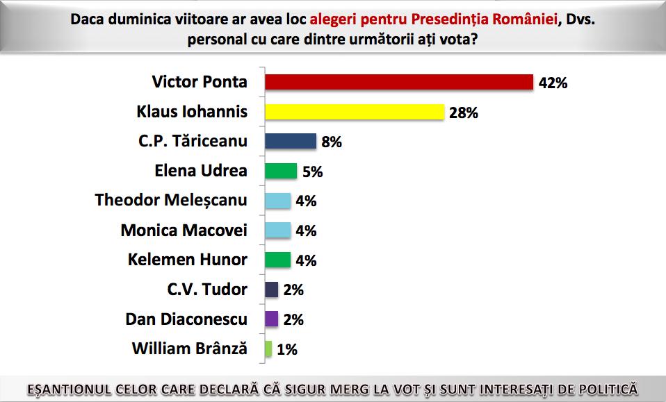 SONDAJ AVANGARDE: Ponta, peste 40%. Iohannis e sub scorul ACL. PMP, peste PLR la prezidențiale