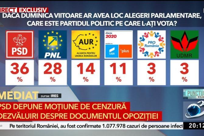 SONDAJ. Ce partid ar câștiga, dacă ar avea loc alegeri duminică. USR în cădere liberă