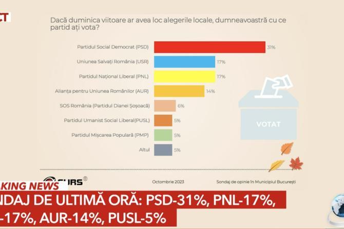 SONDAJ de ultimă oră: AUR, pe locul patru, după USR