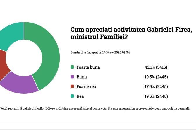 SONDAJ despre Gabriela Firea la vârful Ministerului Familiei - Procente finale