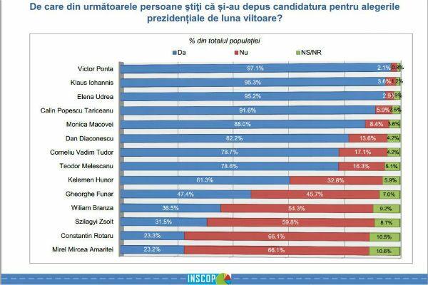 Sondaj INSCOP: Elena Udrea îi suflă în ceafă lui Klaus Iohannis la capitolul notorietate