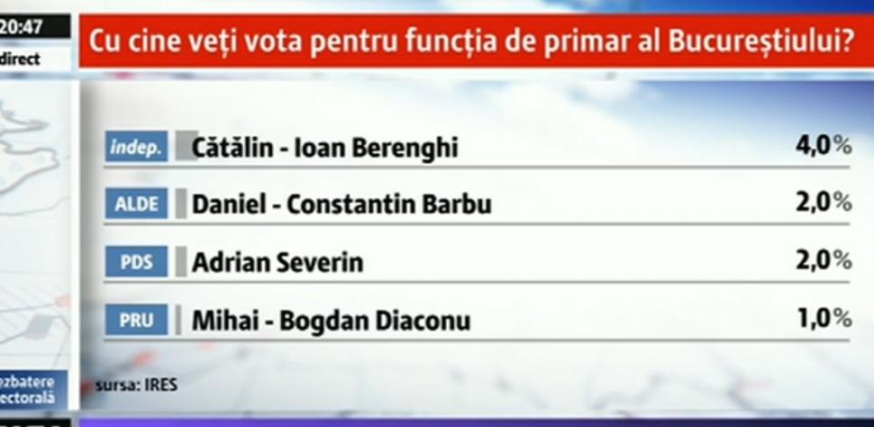SONDAJ IRES pentru Primăria Capitalei. ALEGERI LOCALE 2016: Cifre bombă