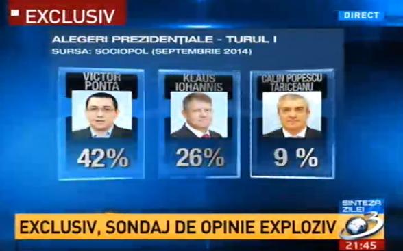 SONDAJ SOCIOPOL ALEGERI PREZIDENȚIALE. Victor Ponta, Klaus Iohannis, intenție de vot