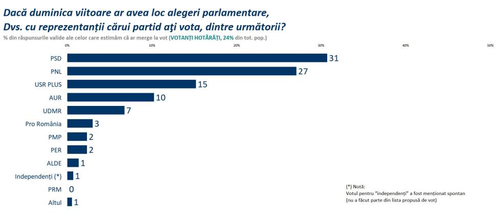 SONDAJ Sociopol. Timpul pare că a stat în loc de la parlamentarele din 2020. Intenție de vot pe partide, procente