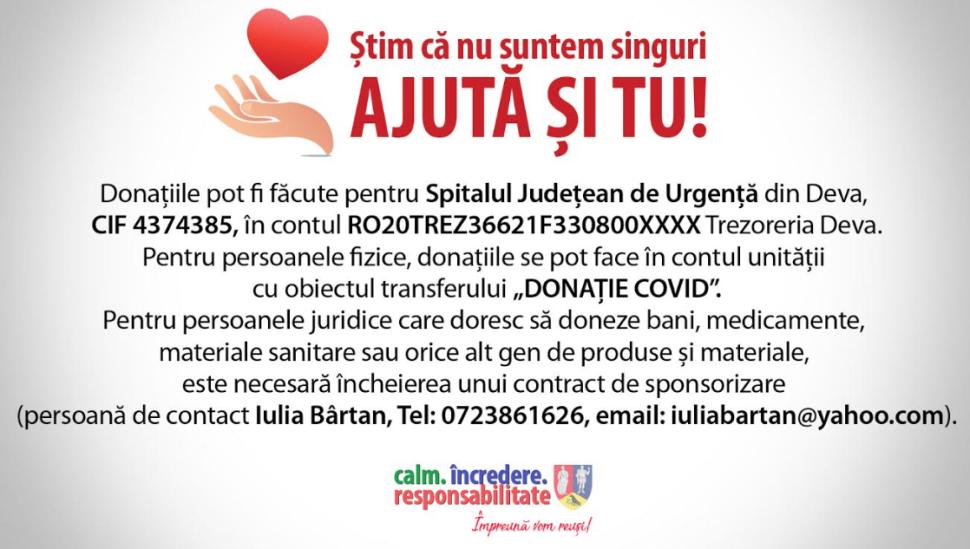 Spitalul Județean din Deva, apel UMANITAR în lupta cu COVID-19