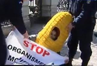 ”Știuleții de porumb” protestatari, strânși și băgați în dubă de jandarmi