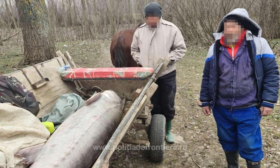 Sturion GIGANT, de 140 kilograme și peste 2,5 metri, eliberat în Tulcea. Braconierii îl cărau cu o căruță. VIDEO
