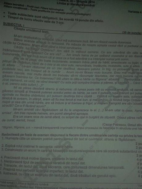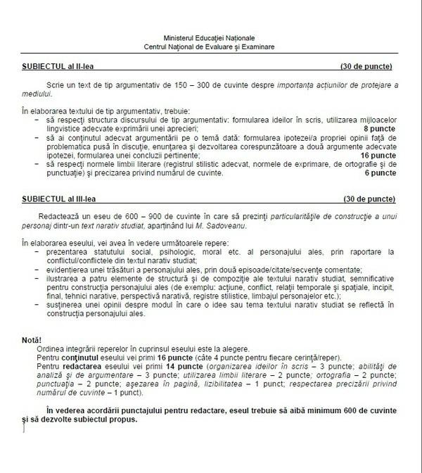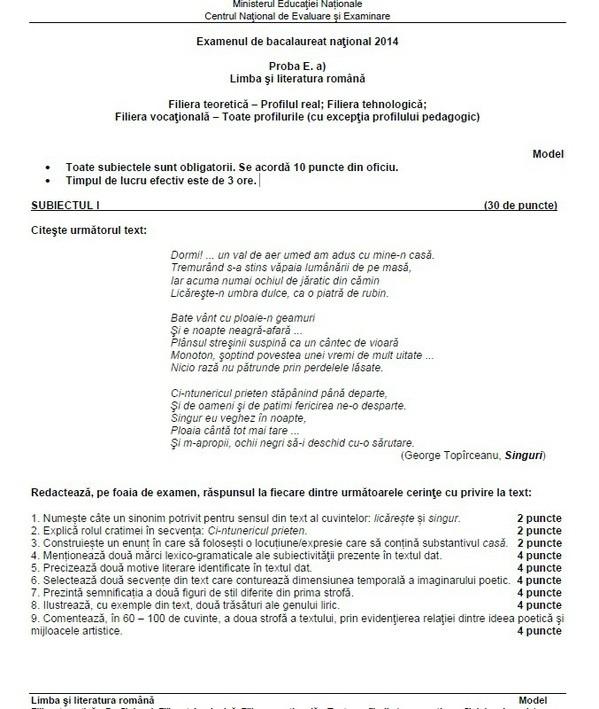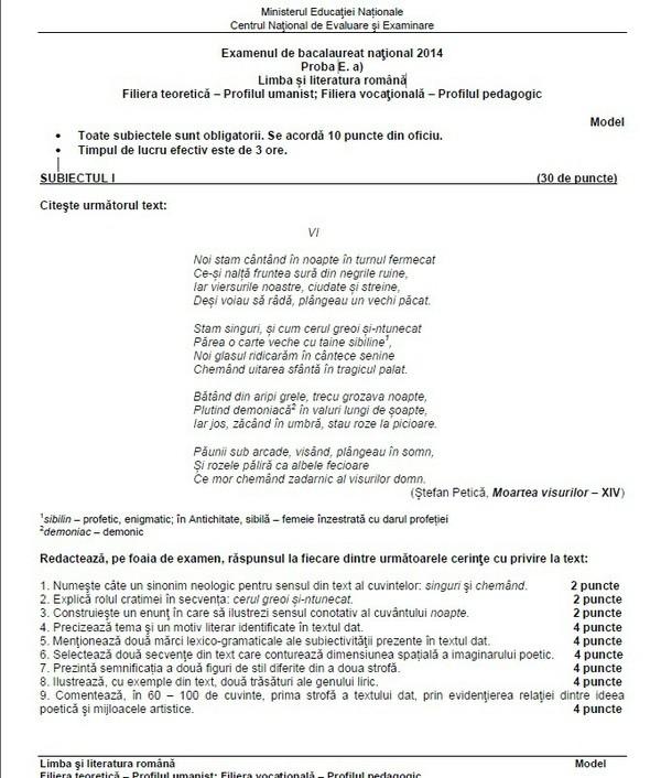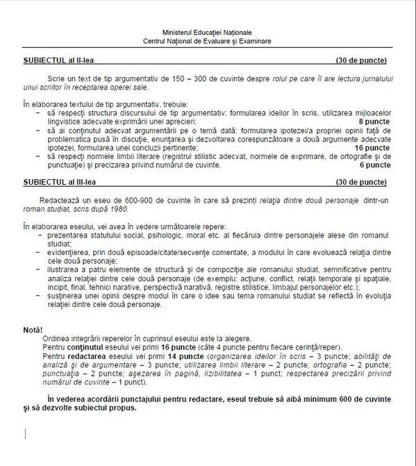 SUBIECTE LIMBA ROMÂNĂ. BACALAUREAT 2014. BAREM, după orele 15,00