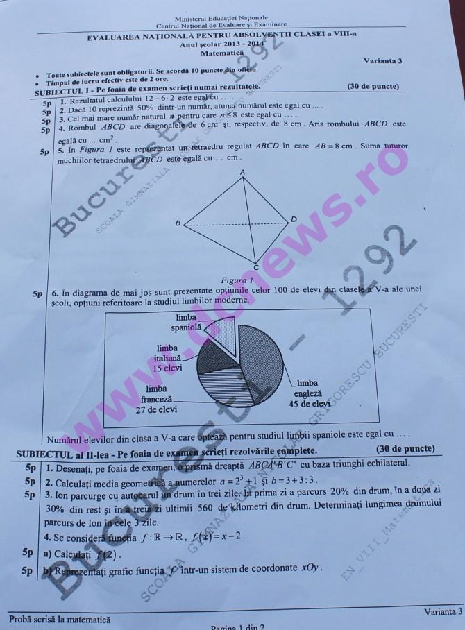 SUBIECTE MATEMATICĂ EVALUARE NAȚIONALĂ 2014. BAREM, după orele 15,00