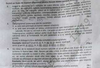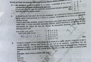 Subiectele la Bacalaureat, proba de Informatică, limbajul C/C++, varianta 9