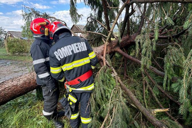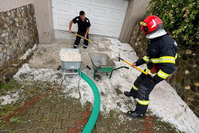 Sute de case afectate de grindină: Acoperișuri distruse, geamuri sparte, copaci smulși - ISU Bistrița