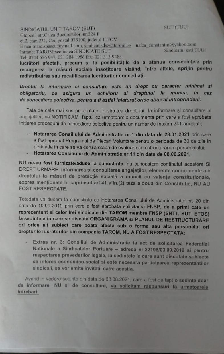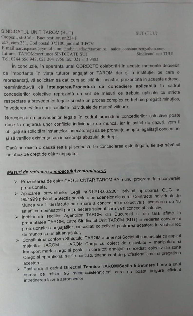 TAROM, concediere colectivă. Ultimele DECIZII- Documente