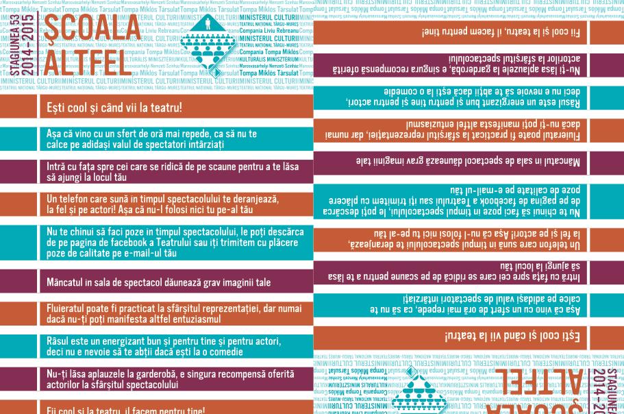 Teatrul Național Târgu Mureș, ȘCOALA ALTFEL. Reguli pentru \'a fi cool\' la teatru