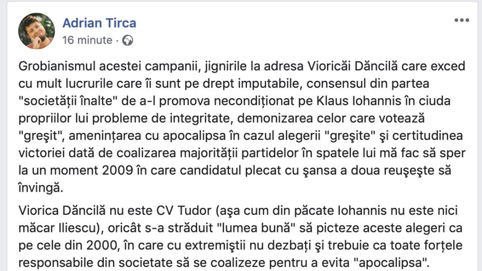 Tirca, studentul care l-a încurcat pe Iohannis, mesaj despre Dăncilă