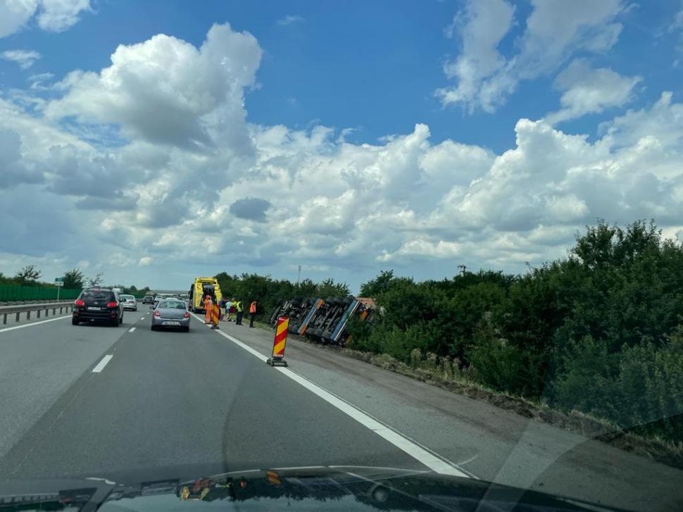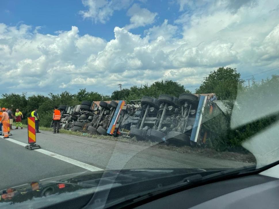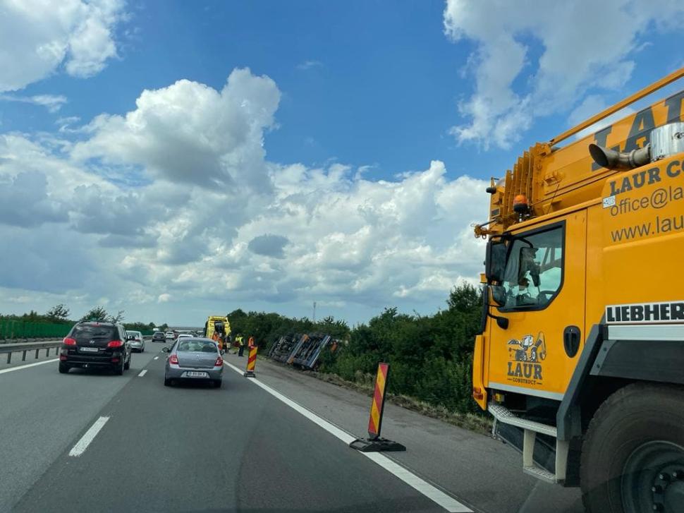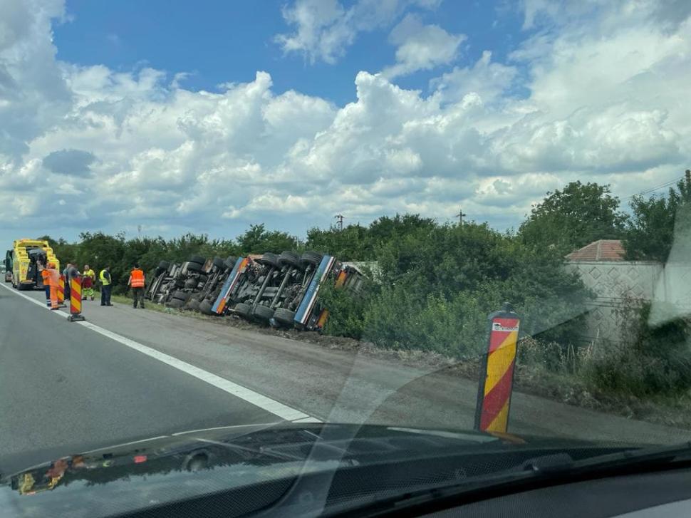 Trafic blocat pe Autostrada Soarelui. TIR răsturnat în şanţ - Foto
