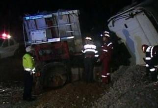 Traficul feroviar pe ruta Bucureşti-Piteşti este blocat, după ce un tir a căzut pe calea ferată