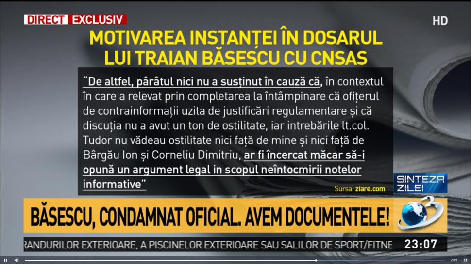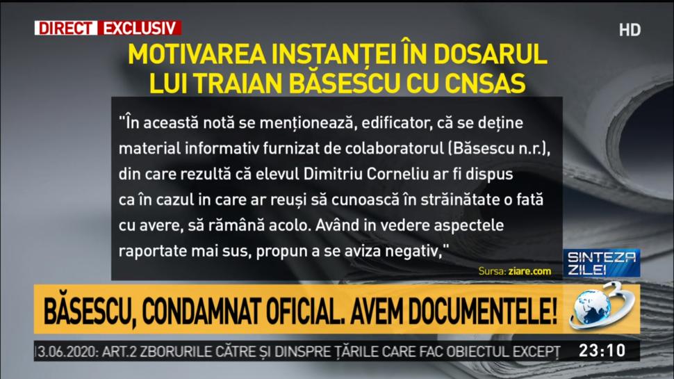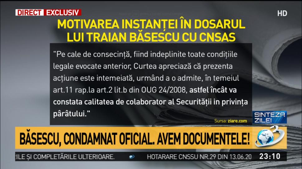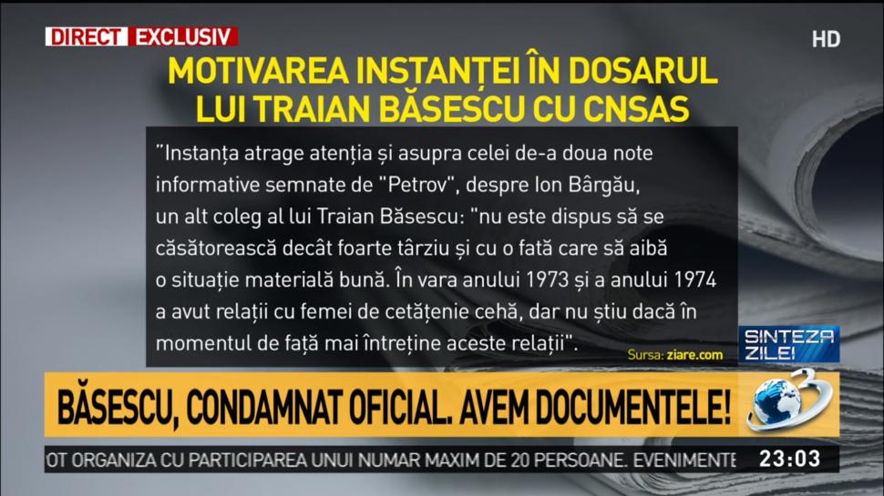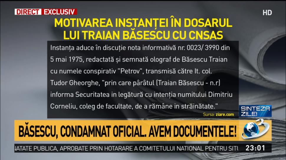 Traian Băsescu, colaborator al Securității. Motivarea instanței - DOCUMENT