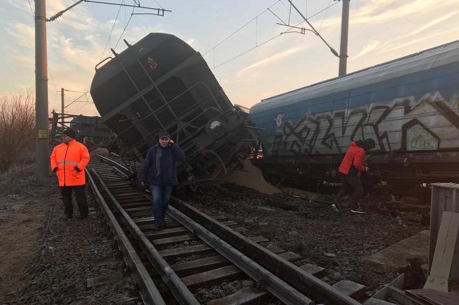 Tren de marfă deraiat - trafic blocat între staţiile Fărcaşele şi Drăgăneşti Olt