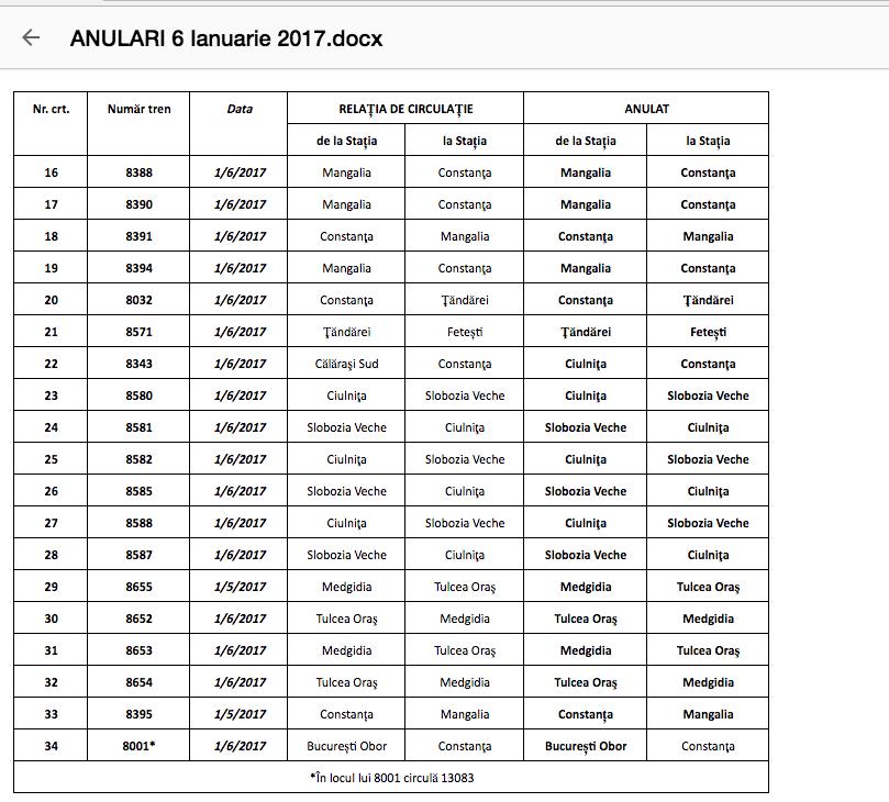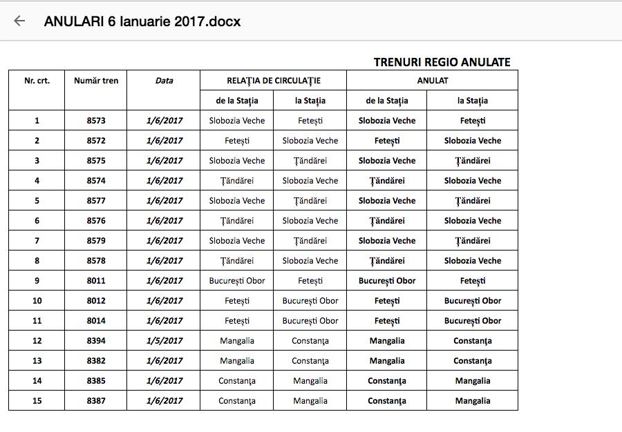 Trenuri ANULATE. Anunț de la CFR, 6 ianuarie