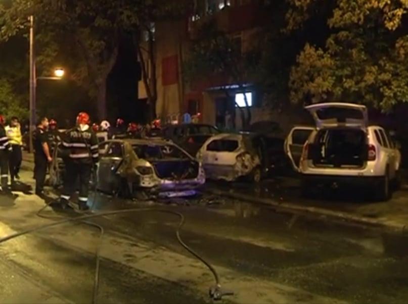 Trupele antitero ale SRI, intervenție în București, după ce 4 mașini au luat foc. Suspiciuni de atac. VIDEO